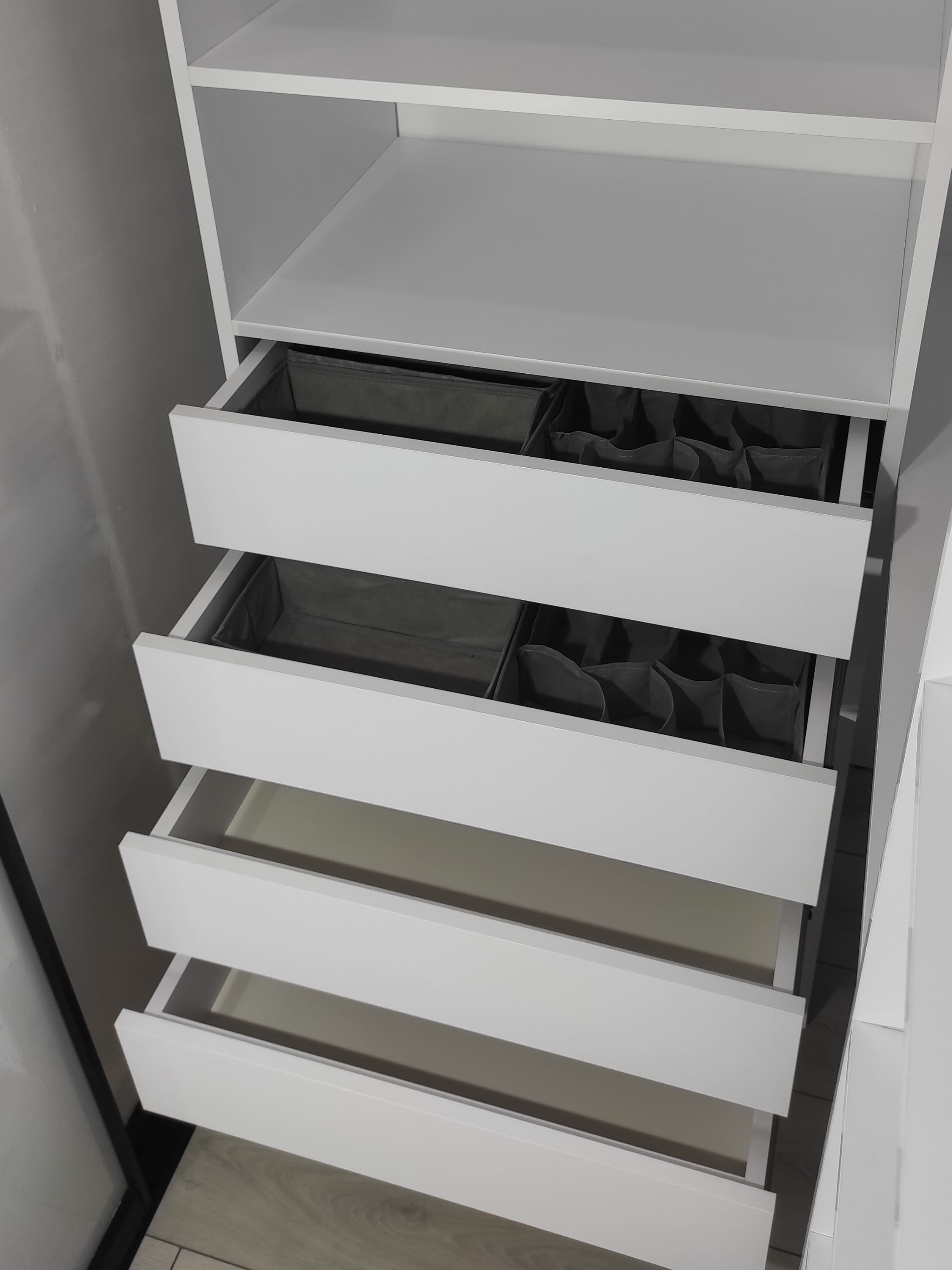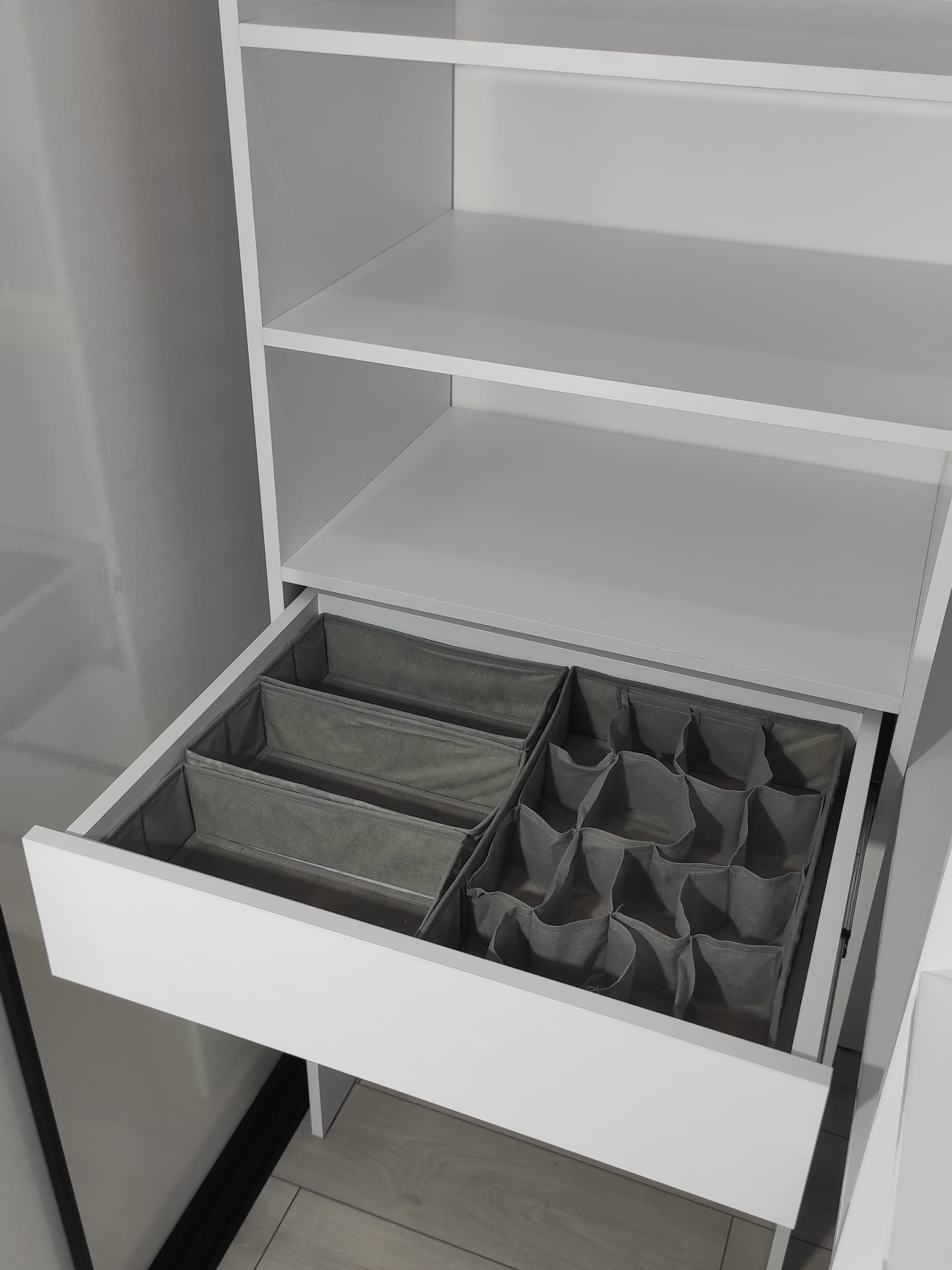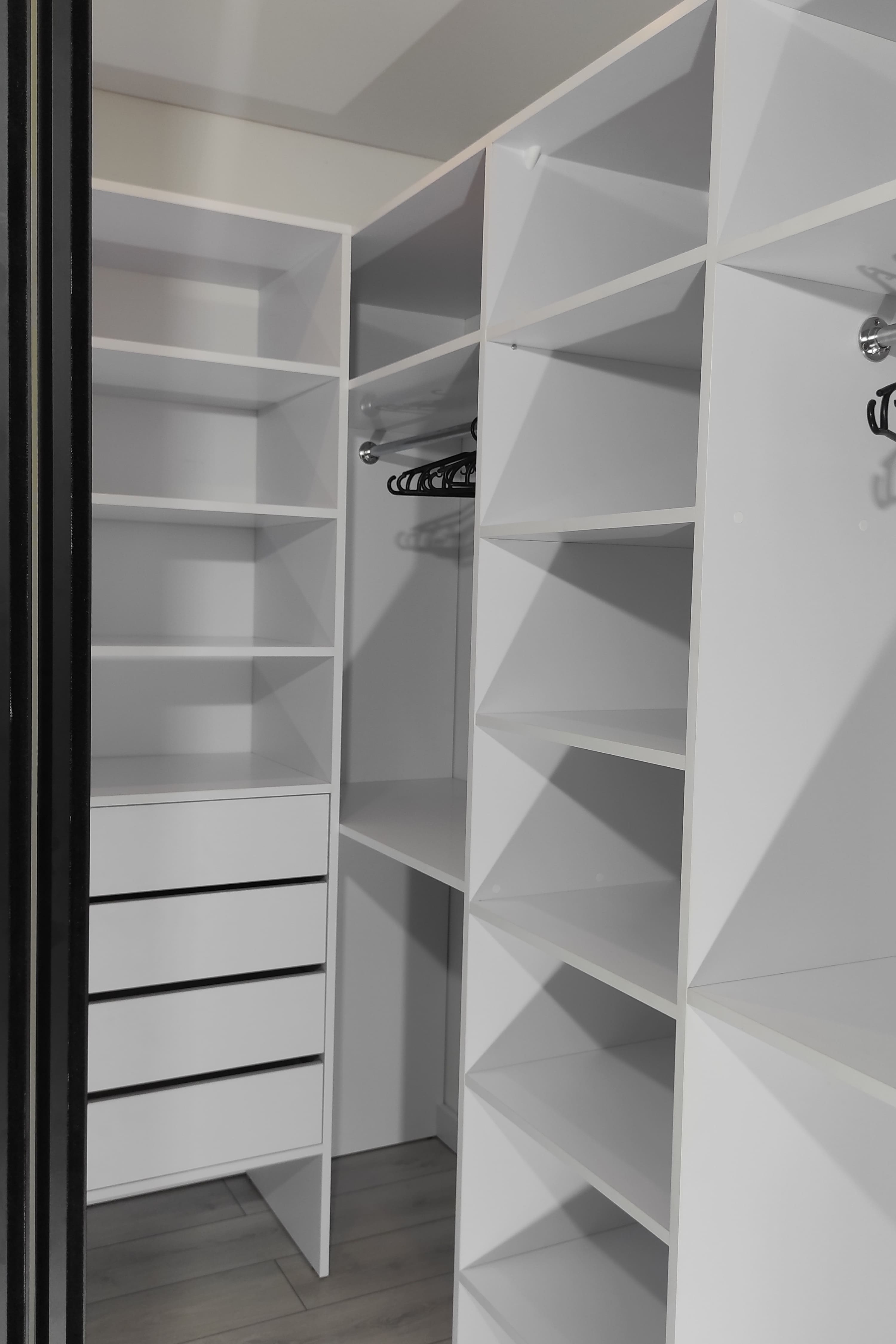 Гардеробна кімната, спроектована у нішу, ідеально поєднує ефективність, зручність та естетику