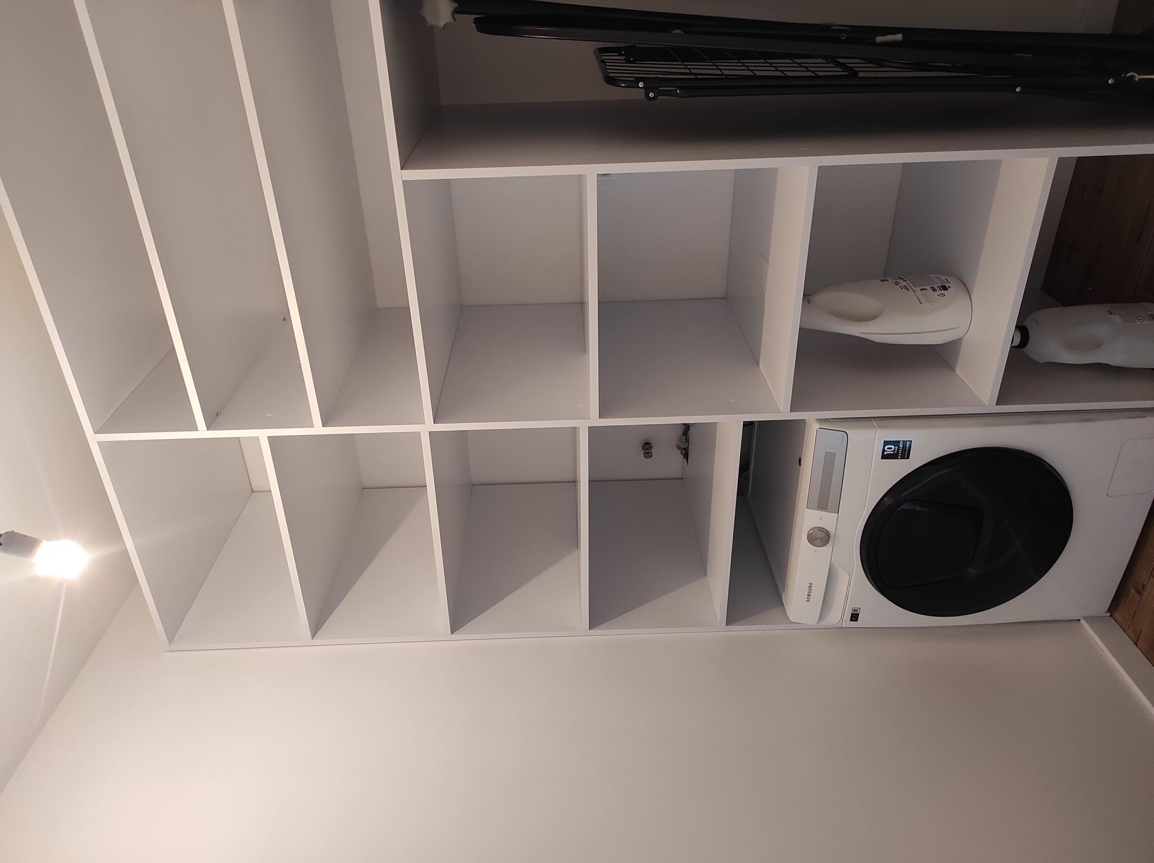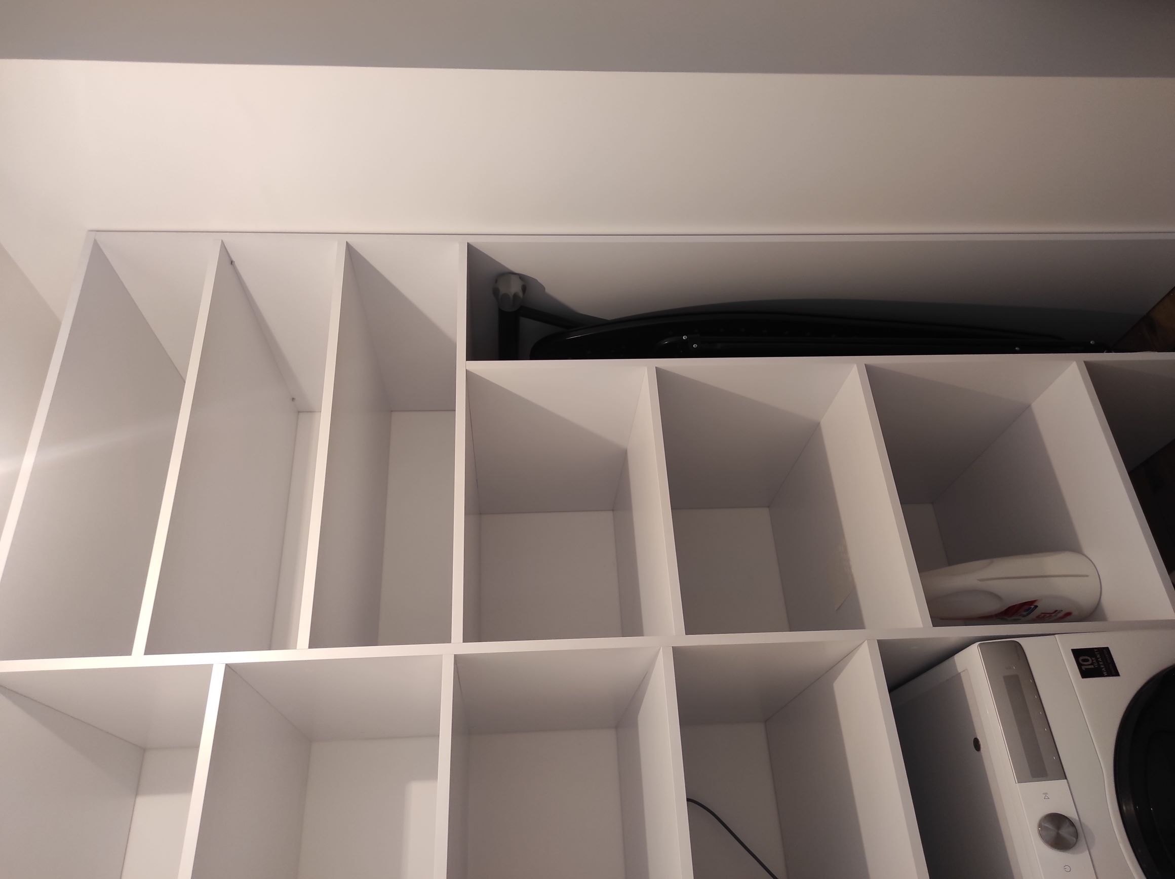 Гардероб на замовлення з ЛДСП. Передбачено місце для гладильної дошки та сушильної машини.