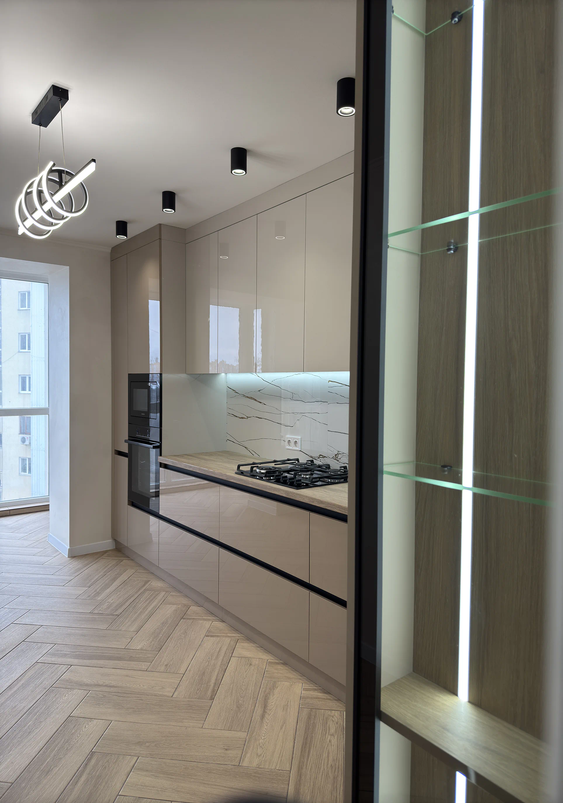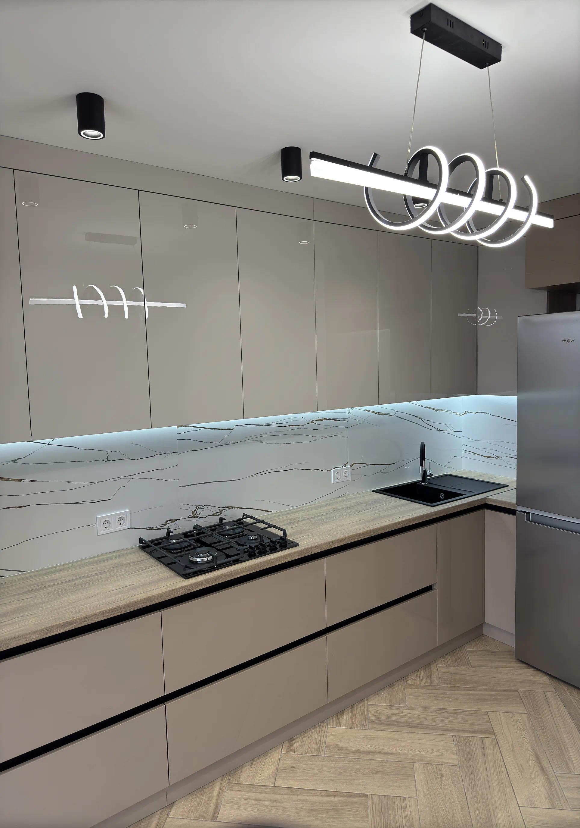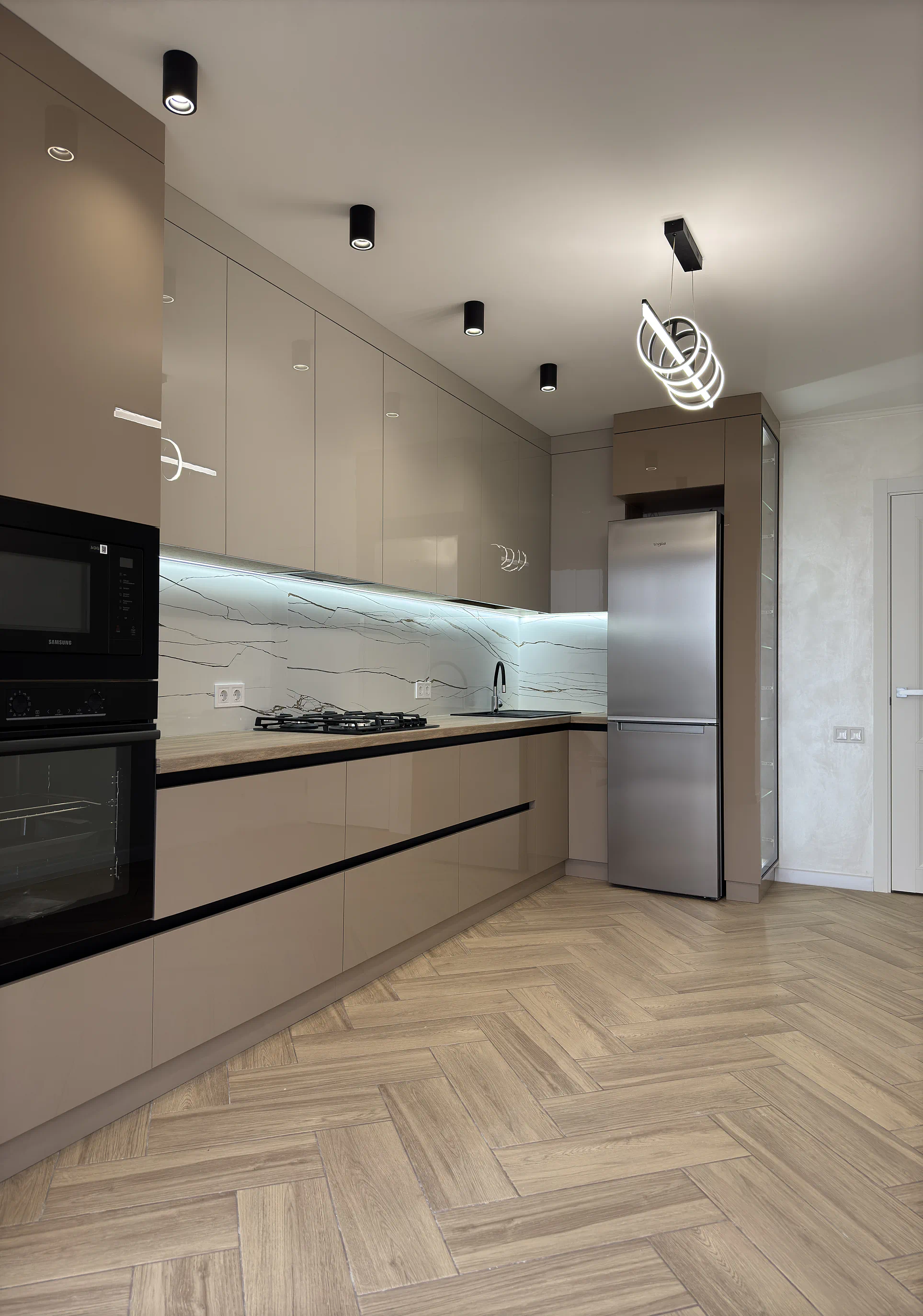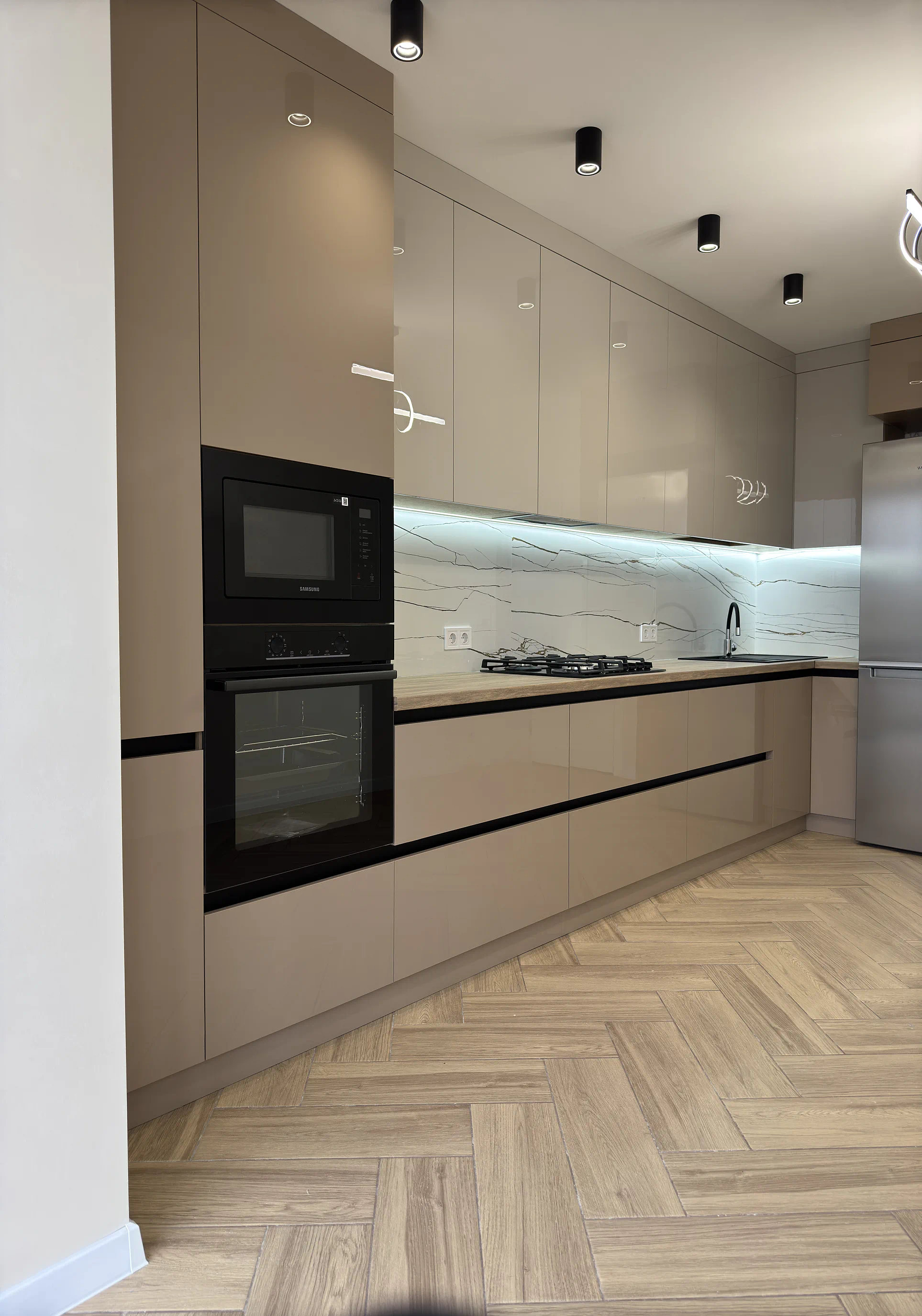 Бежеві відтінки в кухні добре працюють там, де важливо створити світлий, спокійний і візуально теплий інтер’єр. У поєднанні з фасадами до стелі, вбудованою технікою та мінімалістичними рішеннями така кухня виглядає сучасно, але при цьому не набридає з часом.