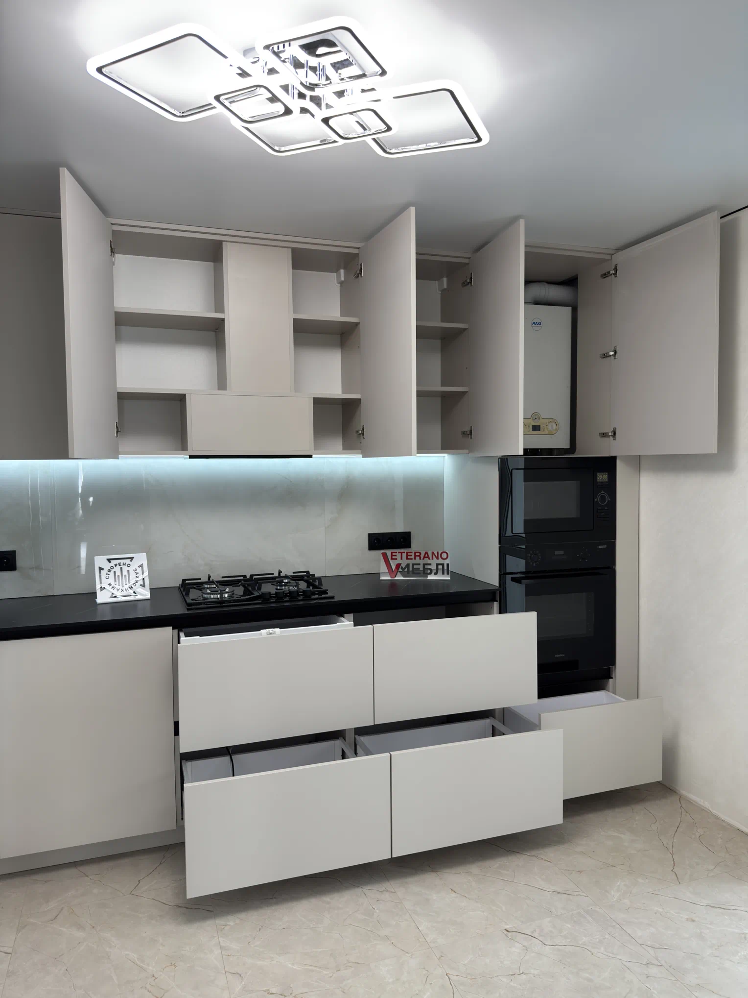 Формат кухні до стелі дозволяє ефективно використати простір, збільшити кількість верхніх шаф, уникнути відкритої зони над меблями та зробити інтер’єр більш цілісним. Кухня до стелі у Тернополі — це практичний варіант для тих, хто цінує порядок, мінімалістичний вигляд і максимум функціональності.
