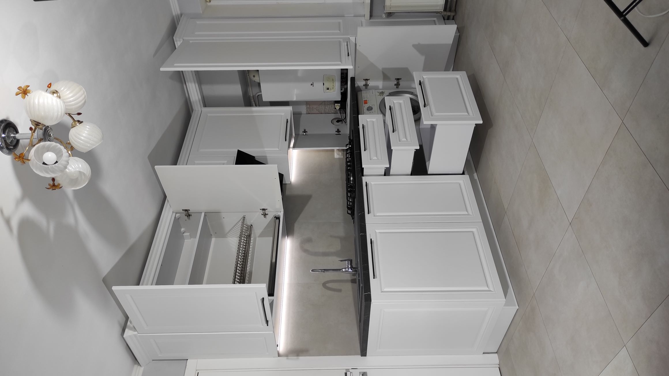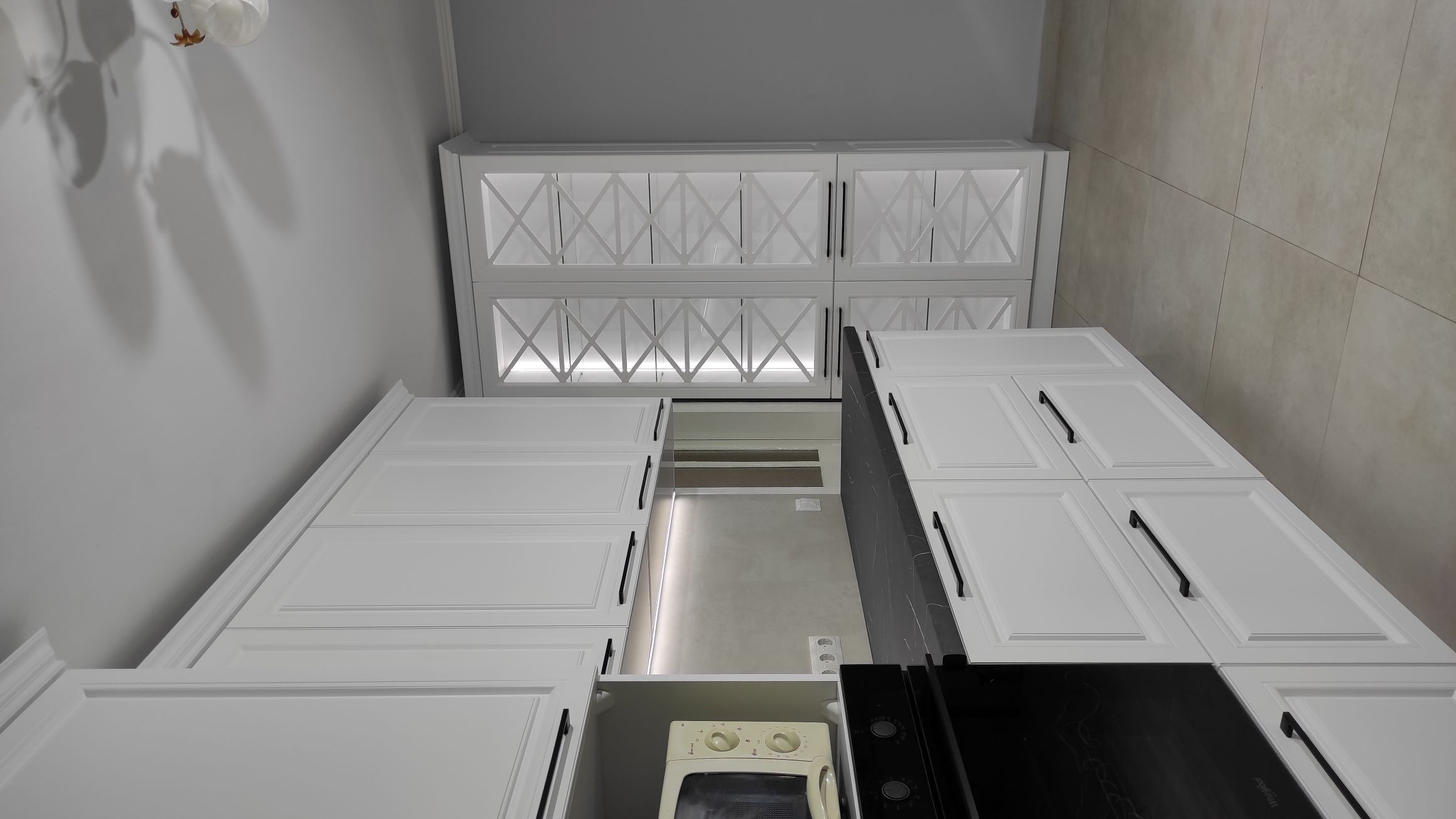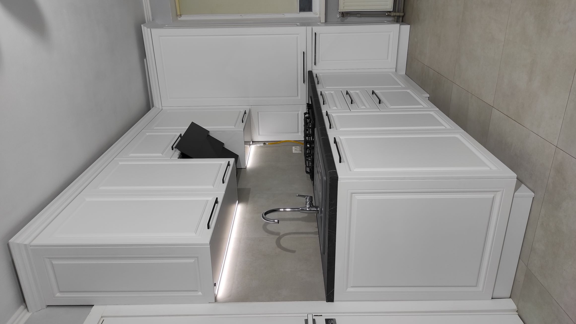 Біла кухня на замовлення з фарбованими фасадами МДФ в класичному стилі.