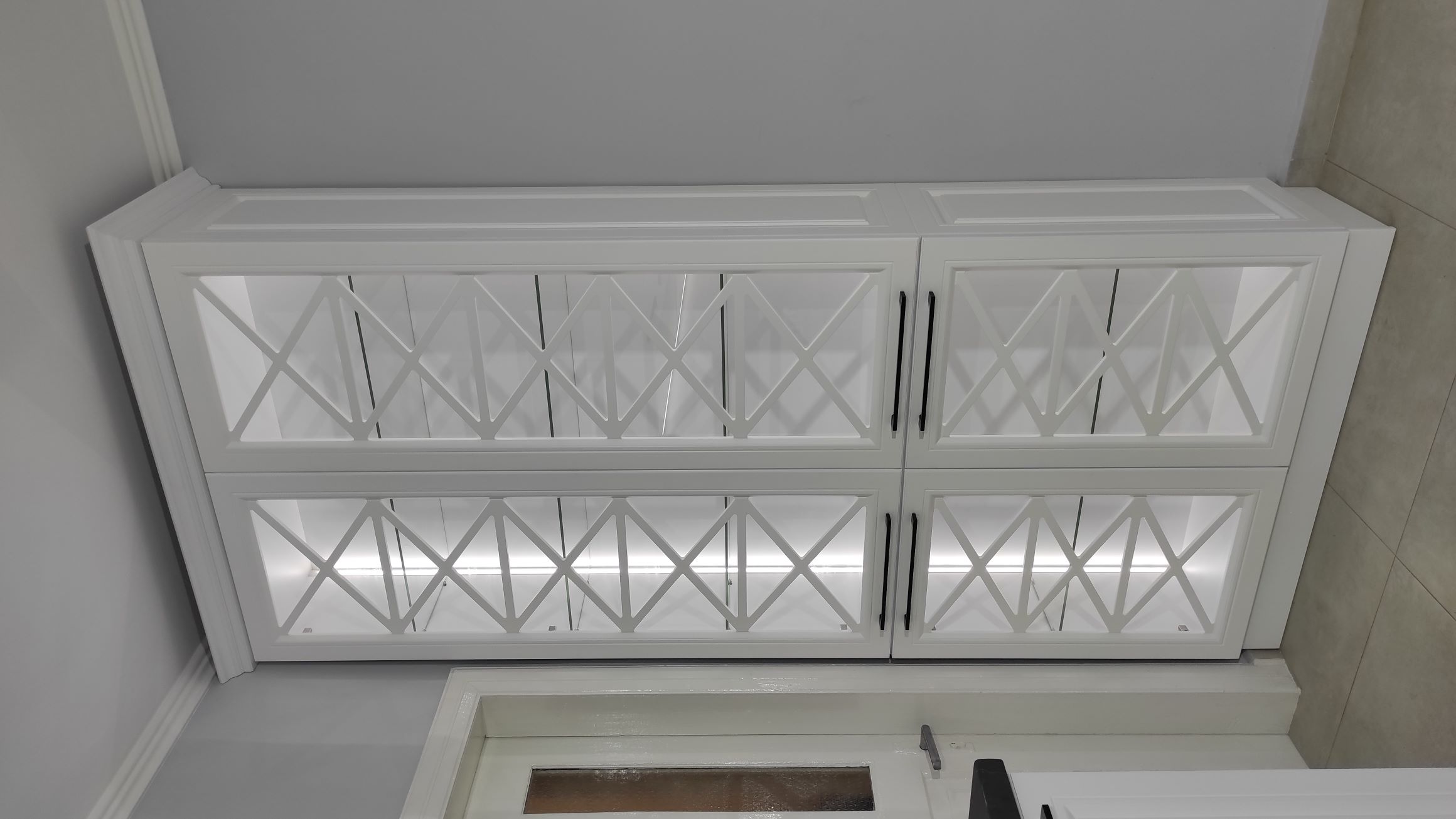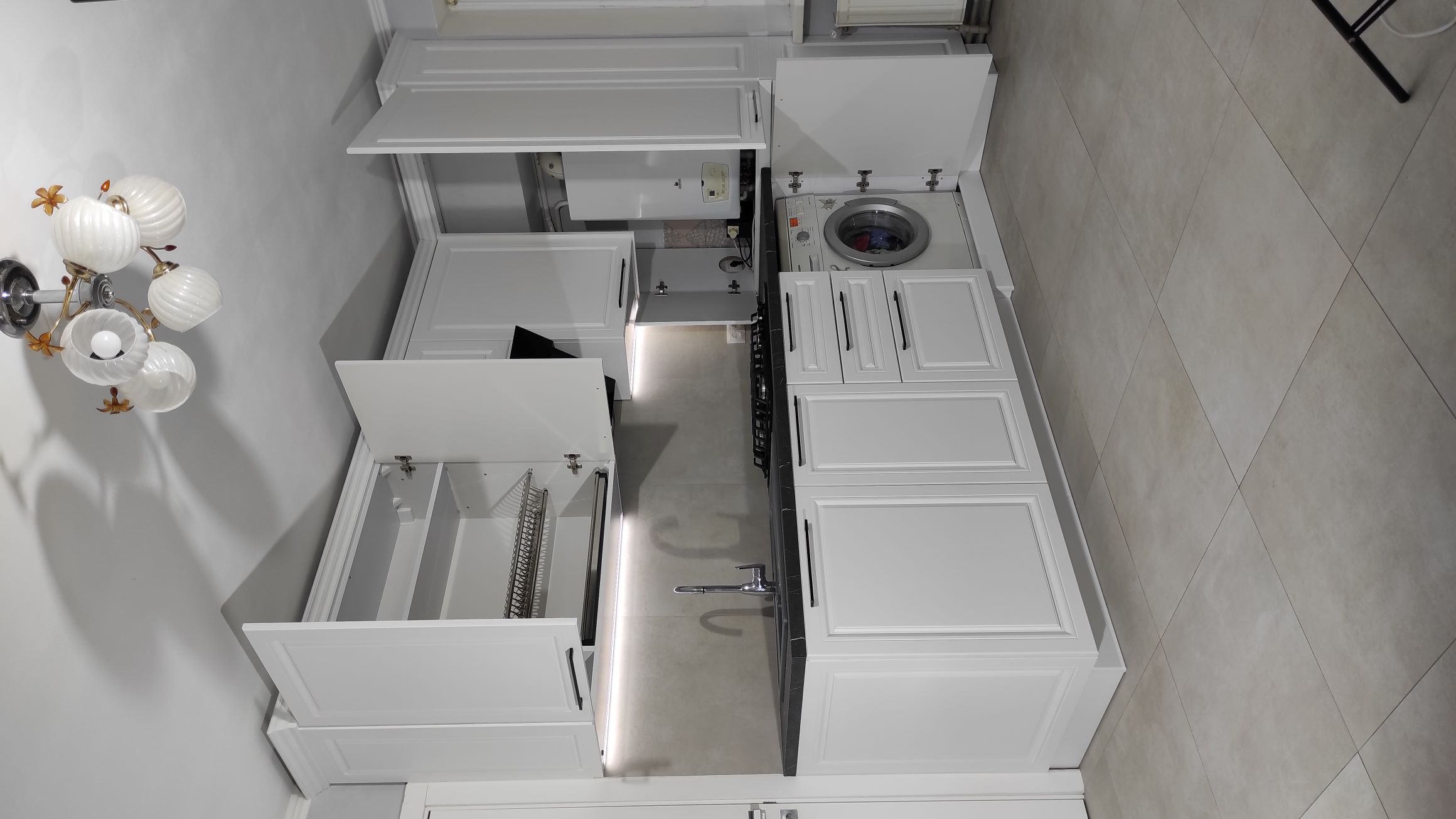 Розкішна вітрина з LED- підсвічуванням. Напрямні Blum. Петлі Blum. Сенсорне Led підсвічування. Вбудована пральна машина