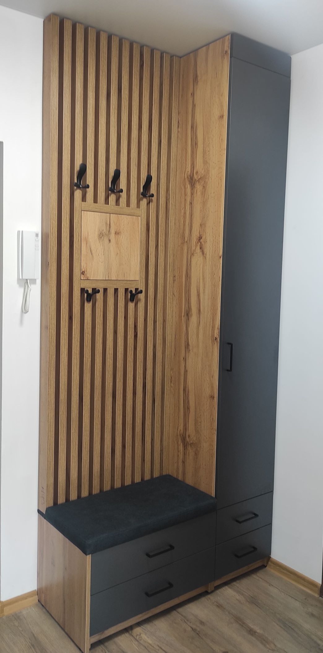 Ветераномеблі пропонує компактний та функціональний передпокій, який може стати хорошим рішенням для невеликих кімат. Захований розподільчий щит. Матеріали -ЛДСП. Фурнітура - GTV. ЛДСП - це міцний, стійкий до подряпин та вологи матеріал, який легко чистити. Фурнітура GTV відома своєю надійністю та довговічністю.