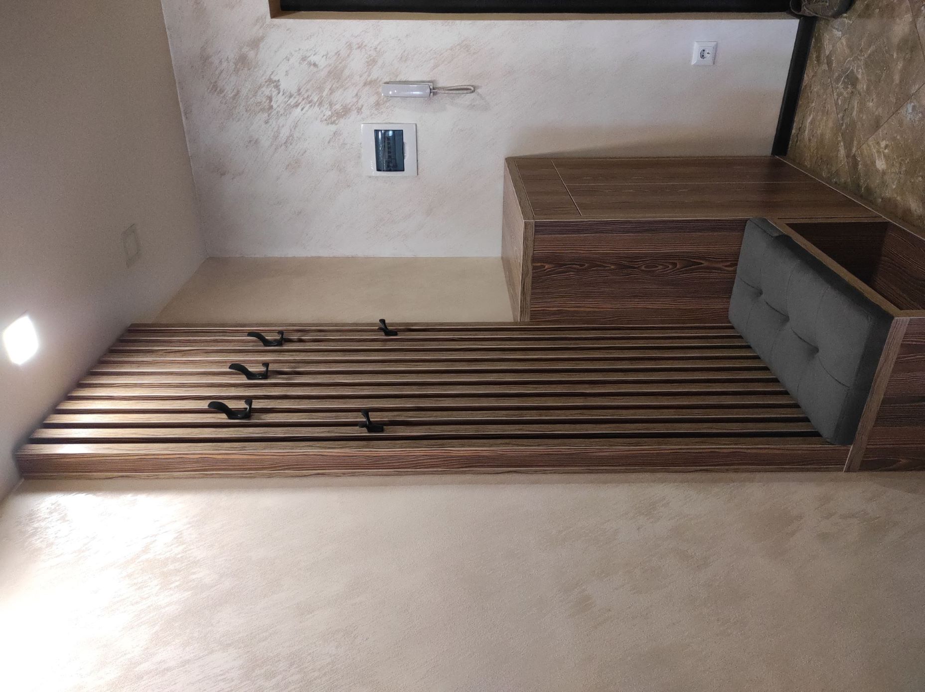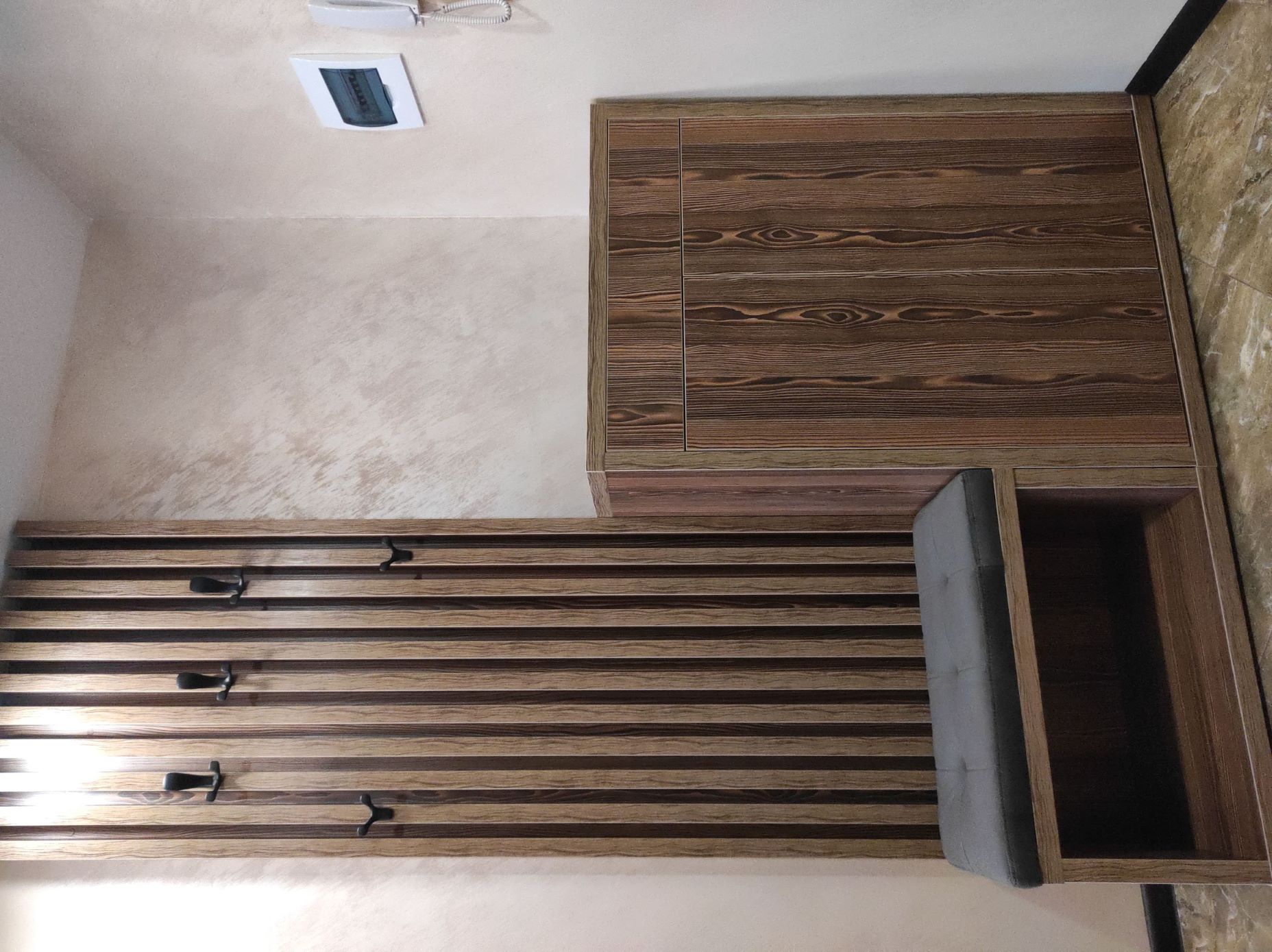 Передпокій з м'якою частиною та комодом виготовлені на замовлення у Ветераномеблі